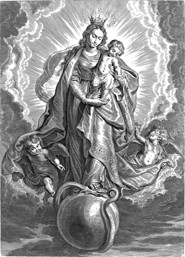 この世界に憎しみや悲しみを生み出しては喜んでいる蛇(に象徴されるもの)なんか踏んづけている聖母マリアは、憎しみが慈しみには敵わないことを表している。