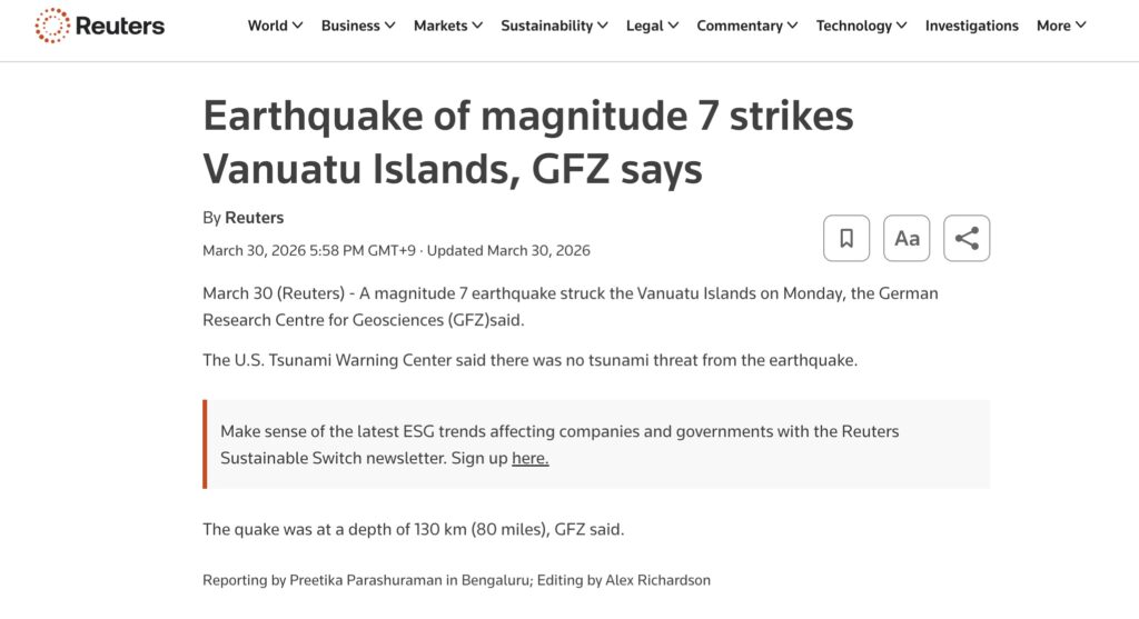 その直後、バヌアツで地震がありました。