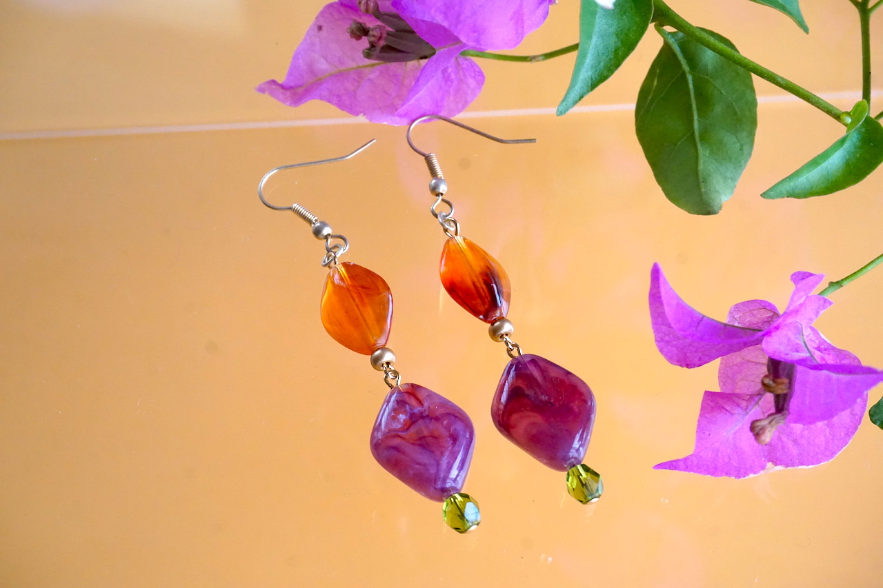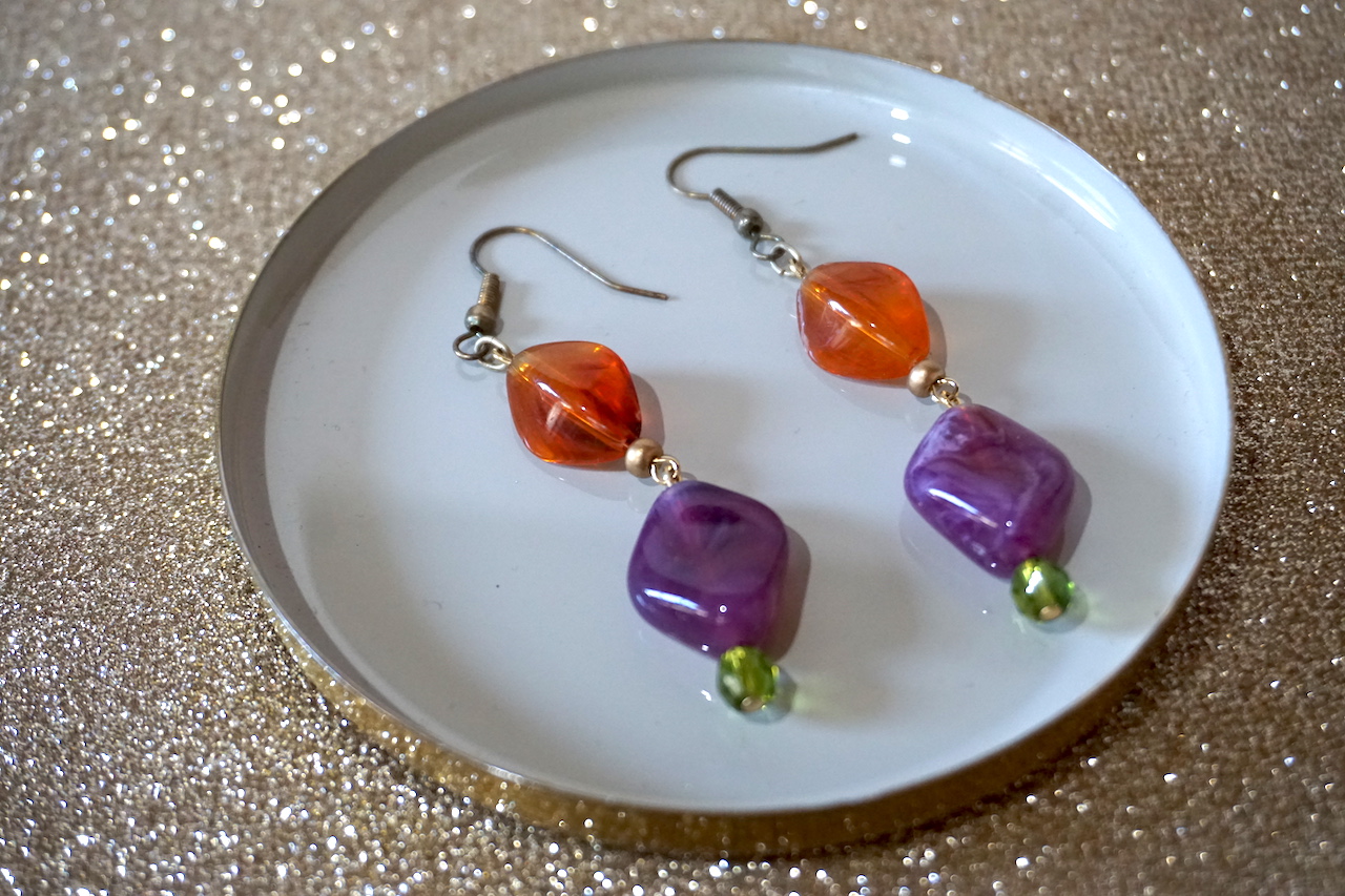 【イヤリング】オレンジとビオラ