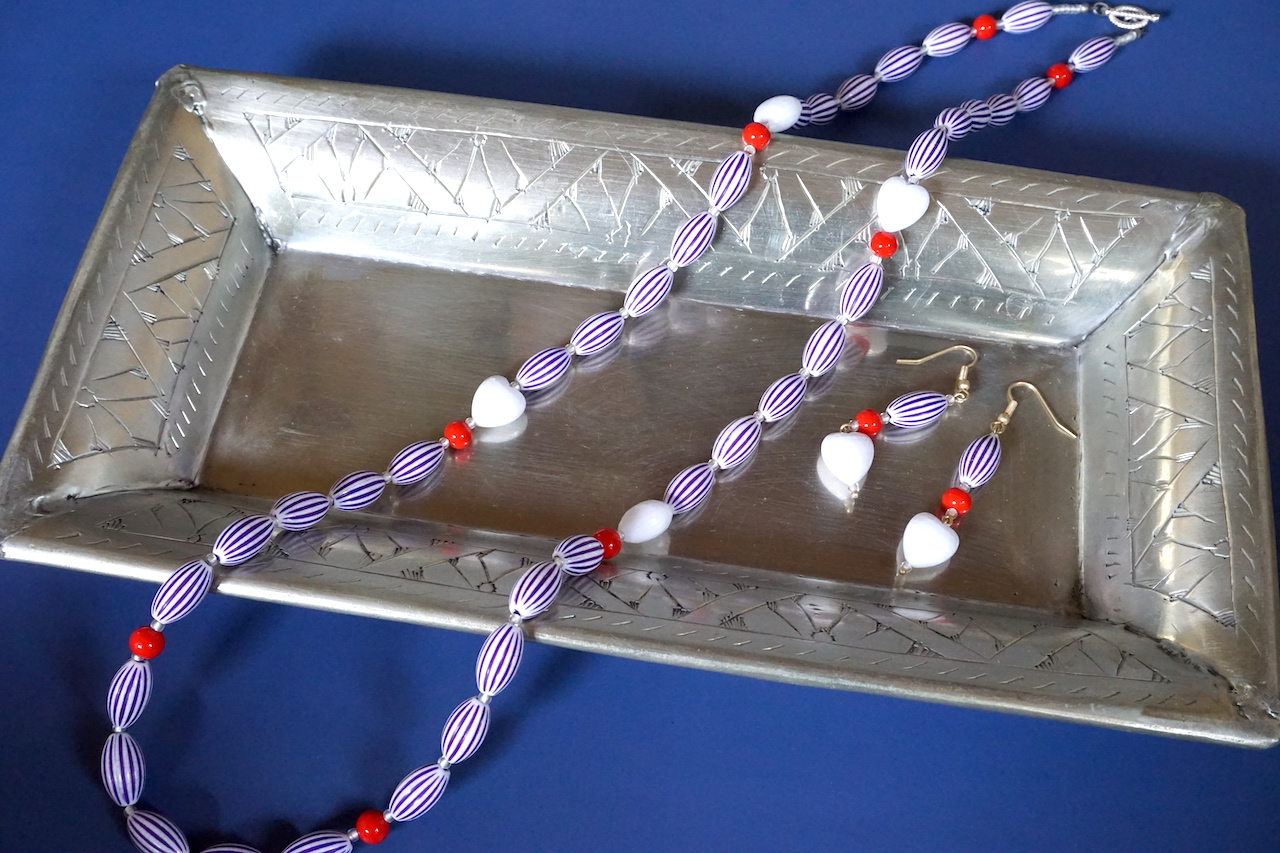白青ストライプのナツメ、サンゴの赤、キラキラする白のハート
